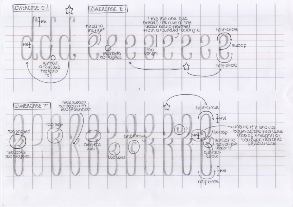 Lucia: Yeah. At one point I tried to design every letter using one rule. One system. But some just wouldnât fit. And you said, âsophistication is about supporting difference and complexity over uniformity.â That changed how I saw it. I needed to loosen the system, let the work develop with some flexibility.